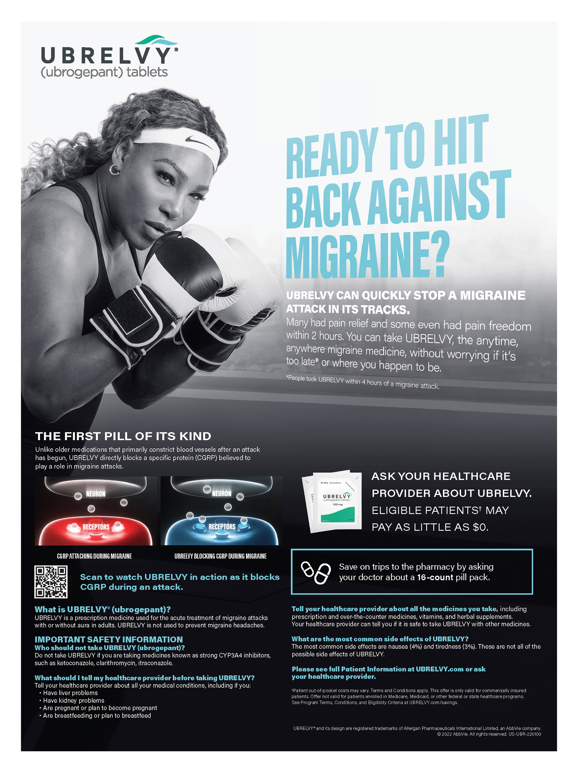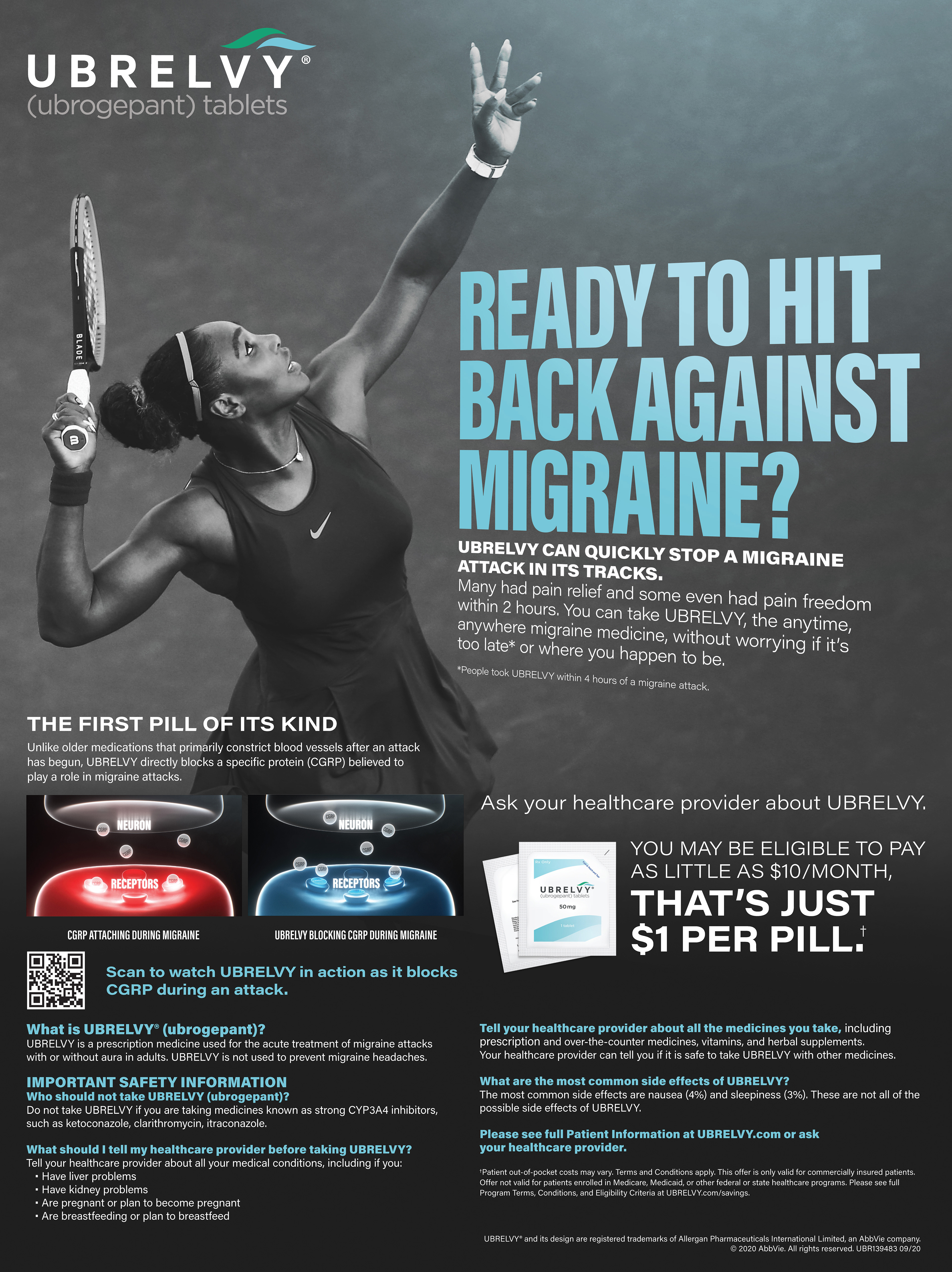 Ubrelvy Launch with tennis icon, American Serina Williams